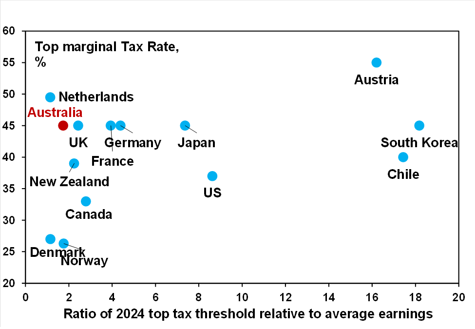 Third, the Australian tax system is highly progressive. The current top marginal tax rate at 47% is above the median of comparable countries and kicks in at a relatively low multiple of average weekly earnings. This is reflected in the top 5% of taxpayers paying around 37% of personal income tax collections and the top 10% paying nearly 50% of income tax. This likely discourages work effort and hence productivity. So, while the tax system is complicated with various concessions – that can be too generous or lead to inequities – curtailing access to them (as is being considered in relation to capital gains, negative gearing and trusts) will only add to the burden on a relatively small group and act as a disincentive for work effort when we should be doing the opposite.